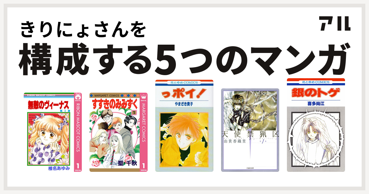 きりにょさんを構成するマンガは無敵のヴィーナス すすきのみみずく っポイ 天使禁猟区 銀のトゲ 私を構成する5つのマンガ アル